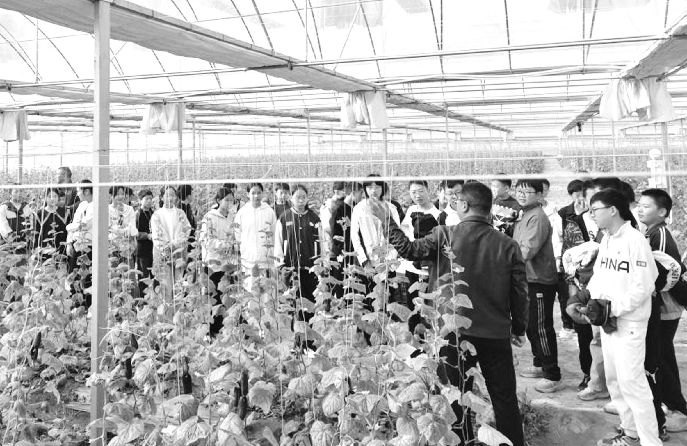12月5日,桐城市大关镇卅铺初级中学学生在锐旭智慧农业产业示范项目大关园区,开展主题劳动教育实践活动。